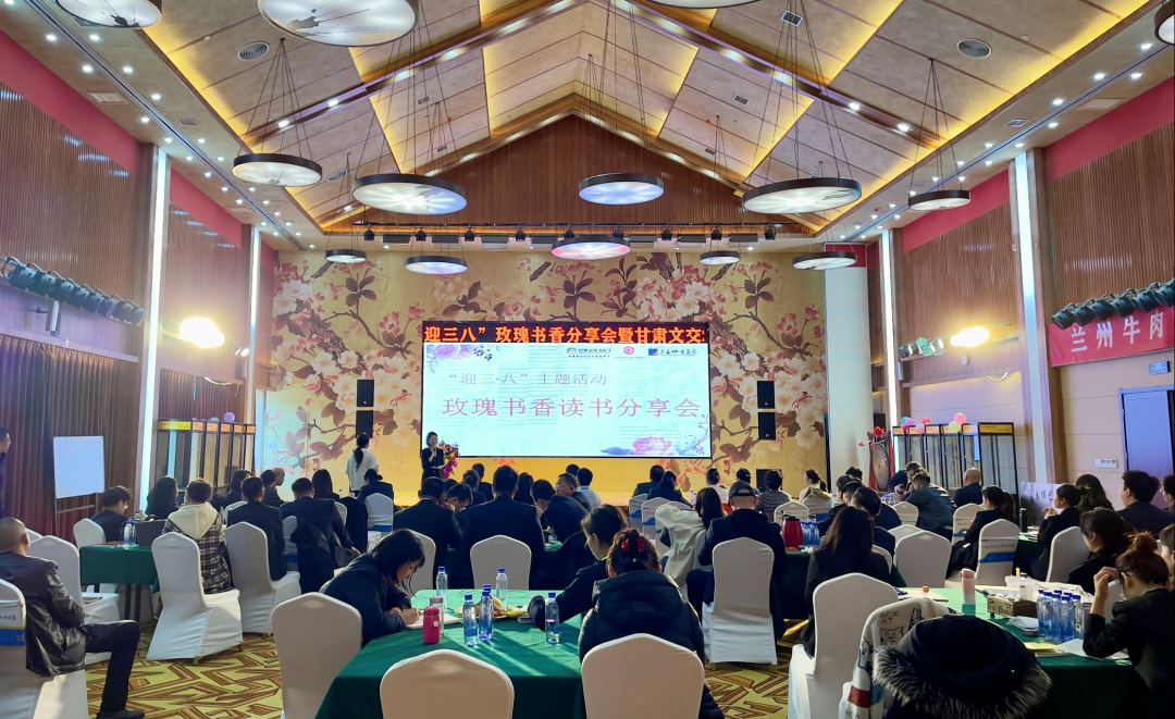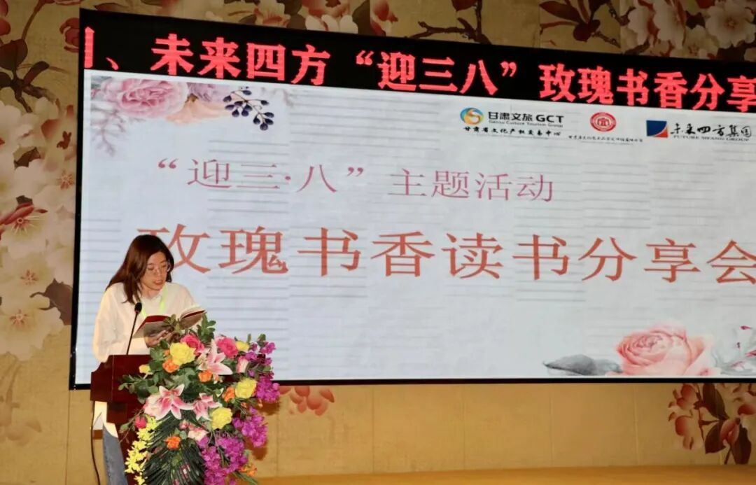 玫瑰书香,巾帼芳华。为进一步丰富广大女职工的精神文化生活,展示女职工的风采和魅力,培养良好的阅读习惯,促进全员素质提升,持续推进家庭文明建设。在第112个“三·八”国际劳动妇女节到来之际,3月5日,甘肃文旅文交中心、鉴评公司、未来四方集团共同举办了“迎三·八”玫瑰书香读书分享会。