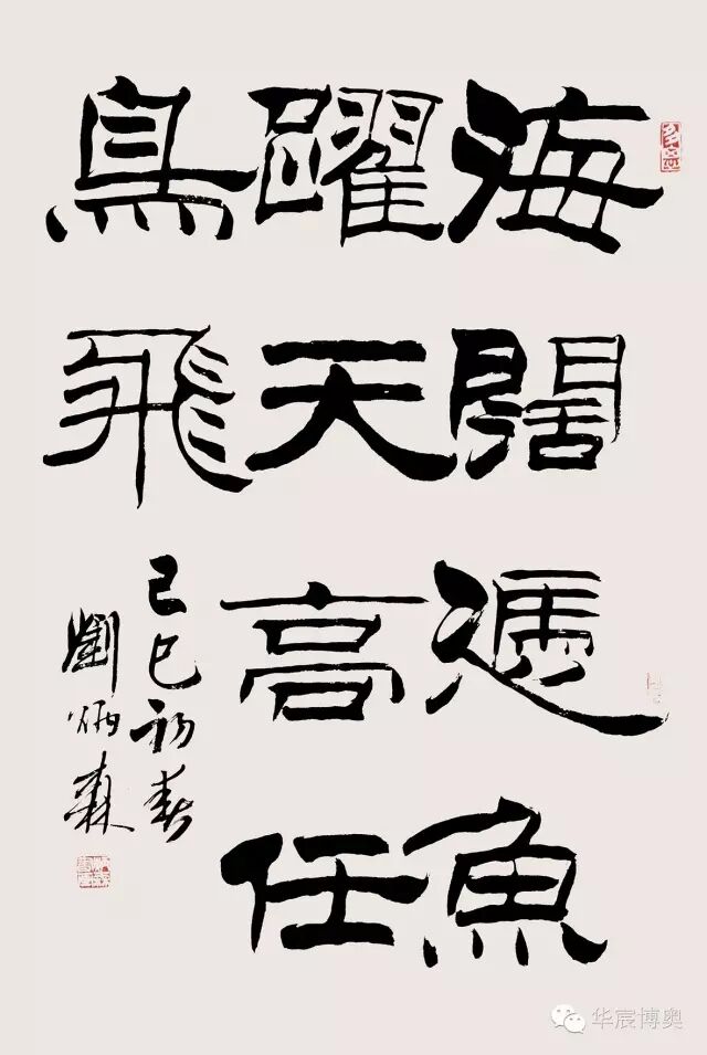 刘炳森(1937--2005)字树庵,号海村,曾任北京故宫博物院研究员、中国书法家协会副主席、中国文联副主席、中国佛教协会副会长、中国人民政治协商会议全国委员会常务委员、中国教育学会书法教育专业委员会理事长等职,出版了《刘炳森楷书千字文》、《刘炳森隶书千字》、《刘炳森隶书板桥道情》等诸多书籍,其“刘体隶书”影响甚广。