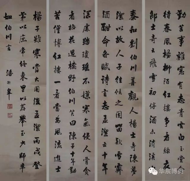 潘龄皋(1866--1954)河北安新人,1881年秀才,1894年甲午科举人,翌年乙未科进士,授翰林院庶吉士。曾任甘肃隆德、张掖、皋兰等县知县,秦州、肃州知州,兰州府知府(未到任)。1921年10月任甘肃省省长。新中国成立后,曾任中央人民政府人民革命军事委员会参议、北京市人民代表。1951年7月被聘为中央文史研究馆馆员。1954年6月19日病逝,终年88岁。潘龄皋书法造诣颇高,擅楷、行书,小字尤精。结体平正匀称,用笔圆润流畅,风格秀美典雅,深受书家好评,可谓“轻柔中饱含刚劲,简朴中蕴蓄深沉”。成为民国时期北方著名的书法家。当时与谭延闿齐名,有“南谭北潘”之说。时津京冀等地商号铺面,皆以延请潘氏题匾为荣。坊间亦有“草书三原于右任;榜书天津华世奎;核桃楷北京潘龄皋”之语。时人称其书为“潘体”。